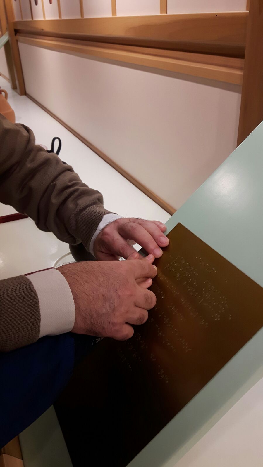 I manufatti, realizzati con materiali diversi (ceramica, gesso, bronzo, legno, marmo) e resi idonei alla manipolazione, sono stati ordinati cronologicamente all’interno di un percorso lineare che integra la lettura tattile con il commento verbale, attraverso scritte a grandi caratteri per gli ipovedenti e in linguaggio braille per i non vedenti.